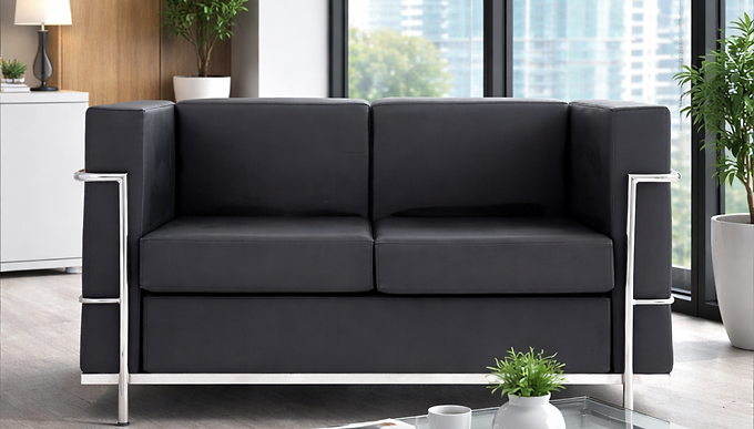 O sofá para recepção com estrutura metálica cromada é indicado para projetos que buscam sofisticação, durabilidade e conforto.